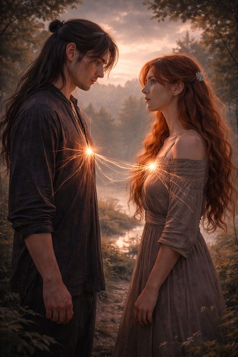 Představ si je jako dvě hvězdy na noční obloze: ne vždy se zdají být blízko, ale jejich světlo se navzájem odráží. Někdy jejich paprsky ztroskotají o stíny, jindy se prolnou a jejich záře rozzáří temnotu. A přesto, i když jsou daleko, jejich existence se cítí, rezonuje, spojuje. Tak se tyto duše znovu a znovu nacházejí, krok za krokem, inkarnaci za inkarnací, a jejich spojení, jemné jako světlo hvězd, stále podporuje jejich vzájemný růst a prohlubuje jejich vědomí.